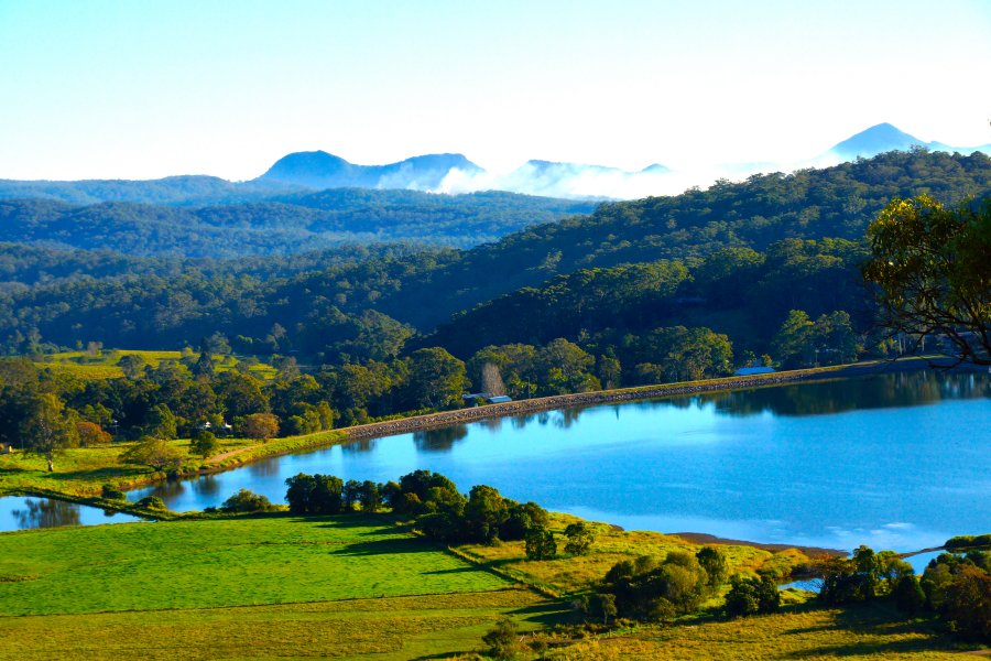 Location - Positioned on the eastern escarpment of the Blackall Mountain Range 1000ft (305m) above sea level, in the hinterland of the Sunshine Coast between the coastal towns of Noosa & Mooloolaba. (2.65km along the ridge from the Nambour - Mapleton Rd). The propery is siuated 10km from the valley town of Nambour & 10km from the range top villiage of Mapleton. The Sunshine Coast regonal Jet International airport is 18km down on the coast.